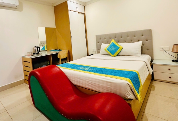 Phòng đôi rộng rãi, sạch sẽ và riêng tư, phù hợp cho cặp đôi hoặc khách muốn không gian thoải mái hơn. Giường đôi êm ái, chăn ga trắng tinh, nội thất tối giản nhưng hiện đại.